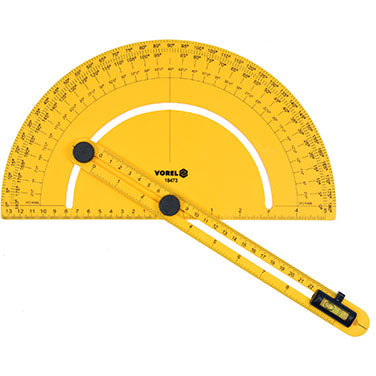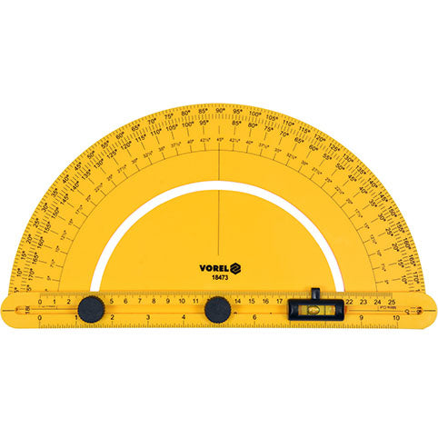 Vorel Transportador Con Nivel. Material: Plastico Abs, Base Con Escala Milimetrica, Brazo Movil Con Longitud De 250 Mm, Con Escalas Milimetricas Y En Pulgadas Transportador Con Nivel, Transportador Plastico, Transportador