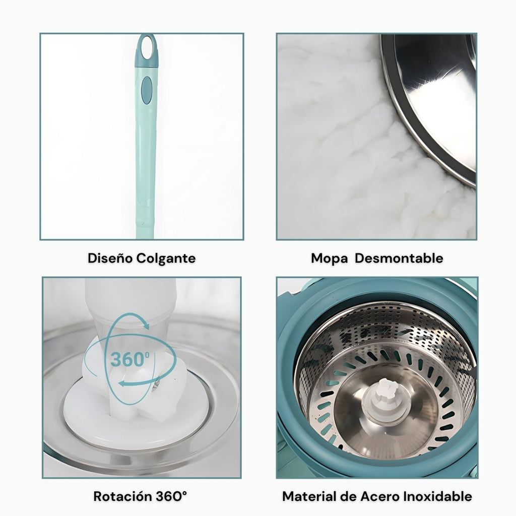 - Incluye cubo con centrifugado de acero inoxidable resistente, duradero y de alta calidad.