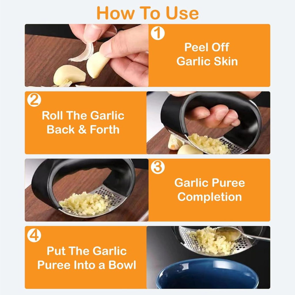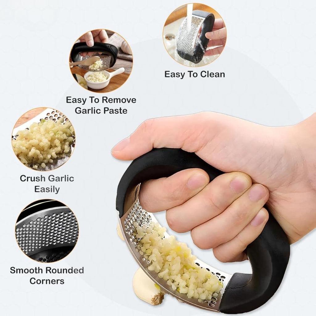 - Agarre cómodo y antideslizante: Su mango ergonómico y antideslizante ofrece estabilidad y comodidad, permitiendo prensar varios dientes de ajo o especias sin esfuerzo adicional.