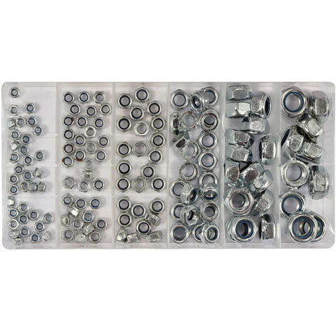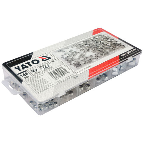 Yato 146 Piezas De Tuercas De Cierre Automatico Surtidas. M4: 35 Piezas; M5: 35 Piezas; M6: 25 Piezas; M8: 25 Piezas; M10: 16 Piezas; M12: 10 Piezas; Material: Hierro, Revestimiento De Zinc; Din985; Estuche Plastico Tuercas De Cierre Automatico, Tuerca