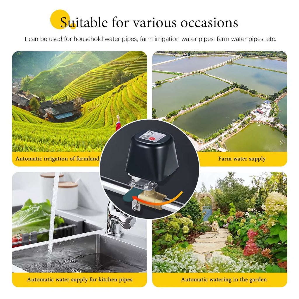 Válvula de Paso Inteligente ZigBee. Válvula Eléctrica para Control Automático de Agua. Para Hogar y Riego.