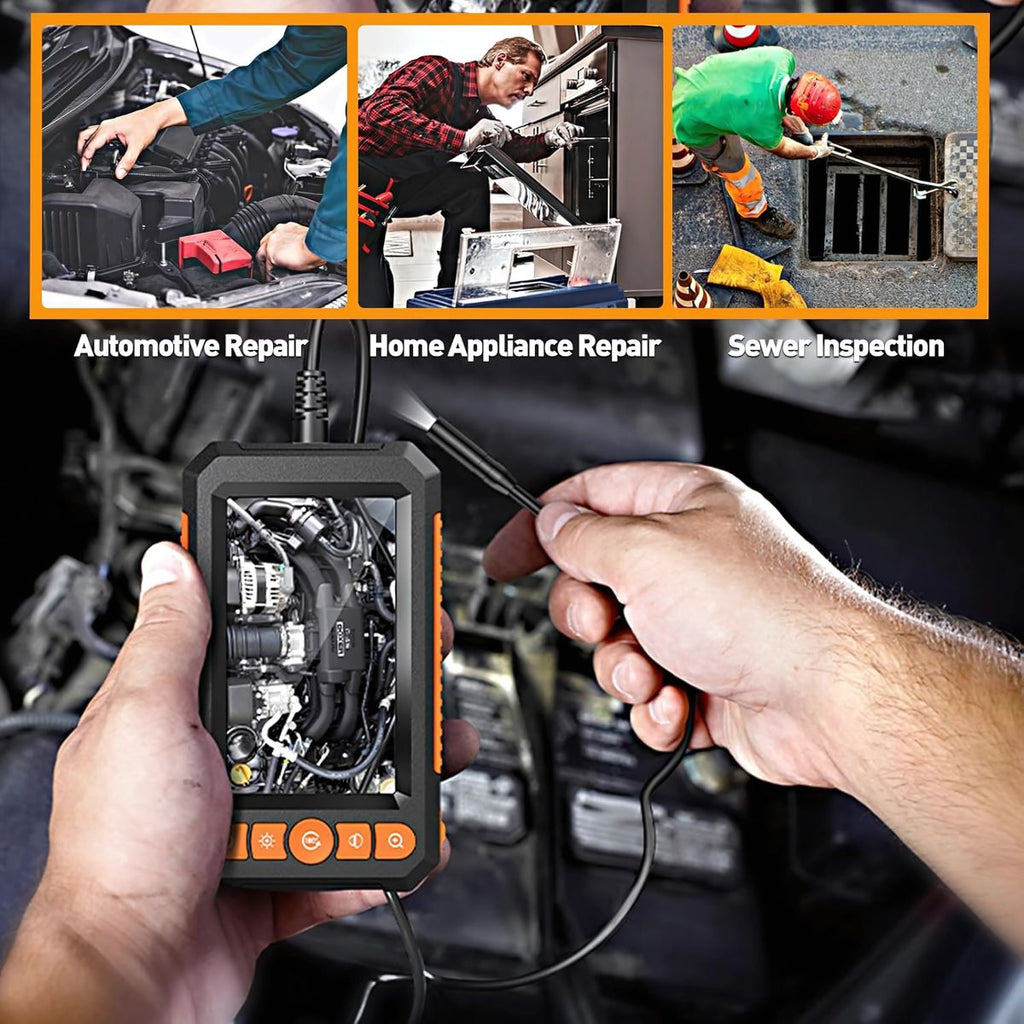- Pantalla IPS de 4.3'': Cámara de boroscopio con pantalla de alta calidad IPS de 4.3 pulgadas, lente HD de 1080P y píxeles de 1.4 in. Visualiza imágenes nítidas en tiempo real sin necesidad de conexión Wi-Fi ni software adicional. Listo para usar al encenderlo. (No captura fotos ni videos).