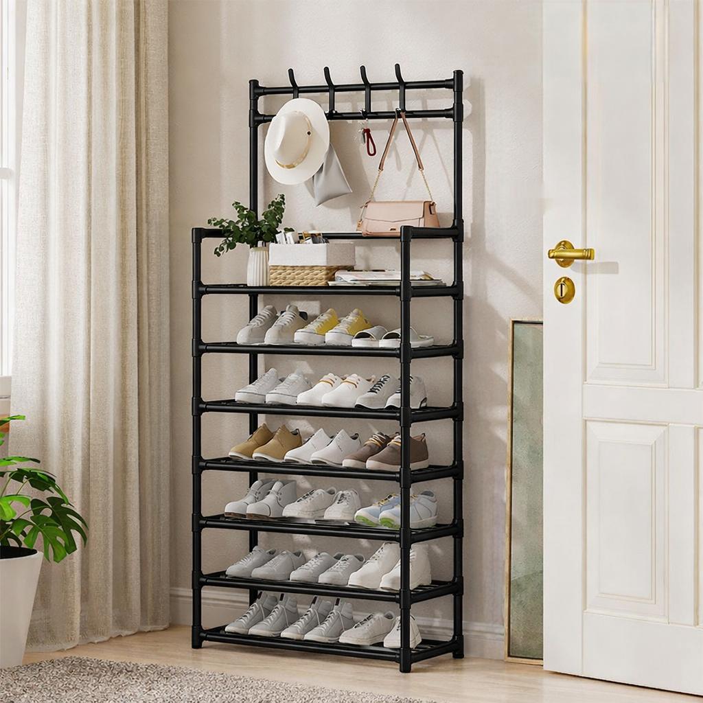 -Perchero multifuncional para zapatos y sombreros, ideal para mantener el orden y ahorrar espacio.